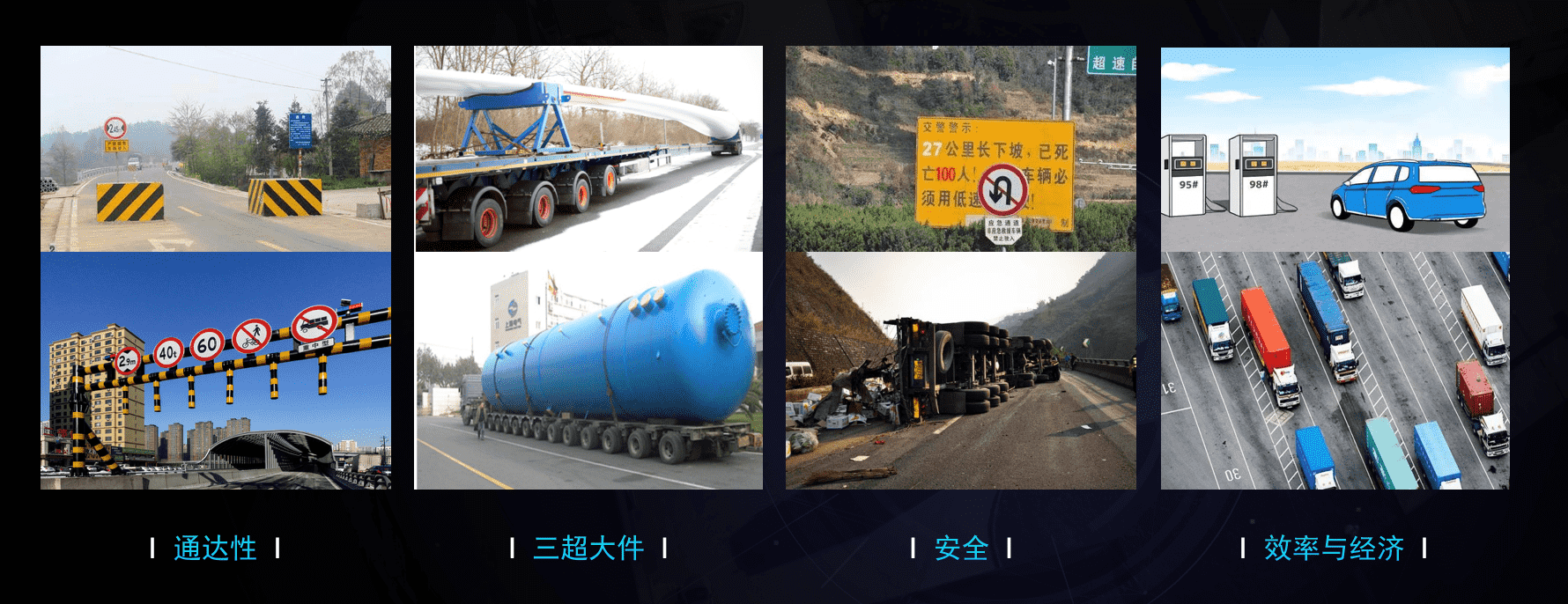 但是真正做了以后发现比我们想的更复杂,比如说车子特别长,怎么过弯?我们有一个拉超长件的合作伙伴,每有新路线都要提前派人做测绘,看超长车能不能在路上过弯,即便如此每年还要给高速公路交很多罚款,因为车辆会把路上的设施撞坏。我们把专门针对卡车的限制分为物理限制和逻辑限制两种。物理限制有限高限宽,因为超过了肯定过不去。但限重就属于逻辑限制,导航路径就需要权衡卡车司机的需求,以及规划上面算法的诉求,还有安全监管的诉求。