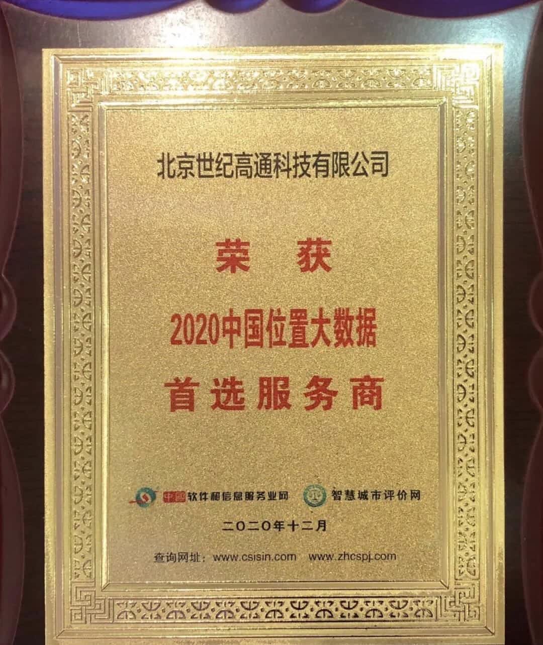 2020中国位置大数据首选服务商奖项