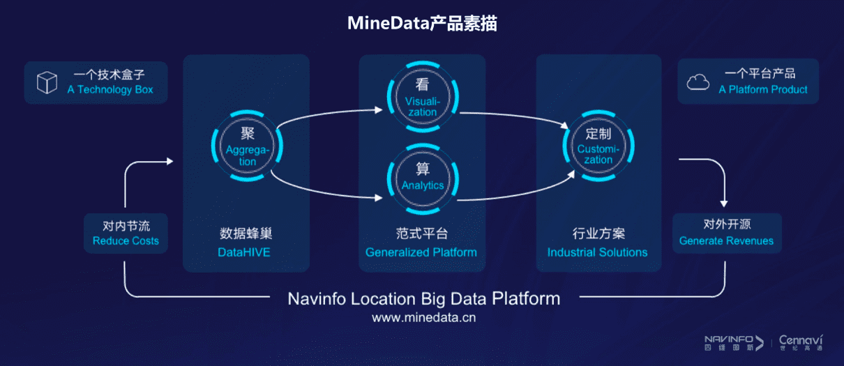 MineData位置大数据平台由企业自主研发,集数据、可视化、算法、应用服务为一体,专业为各行业提供企业级位置智能解决方案。随着产品不断的迭代更新,实现了三维可视化能力的再次突破,业务场景的精细化还原,以及位置服务能力的再度升级,呈现出明显的精细化、智能化、一体化等特点。MineData数据总量为PB级、日增TB级,支持渲染三维球体、动态轨迹模拟、精细化道路等复杂场景,搭建云端交互式算法模型,可为汽车、交通、交警、公安、车辆、保险、规划等领域提供位置智能解决方案。