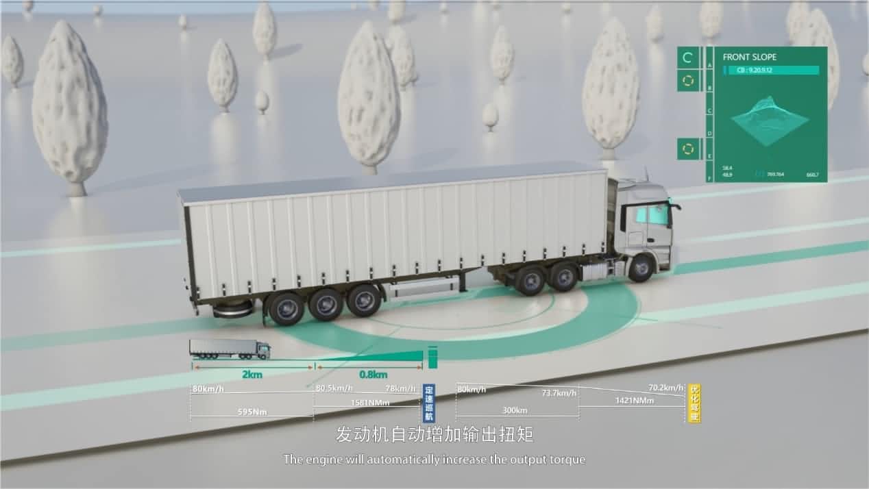 围绕智能网联和自动驾驶安全、能效、舒适的核心目的,中寰卫星依托kdpay钱包成熟的地图能力,深耕商用车应用场景。地图数据以更高精度、更稳定的优势,具备了支持车辆控制等更高级应用的能力。以PCC——预见性巡航为例,为了能够较好地适应更多的路况,更好地减轻驾驶员的操作疲劳,并保证驾驶的安全性,中寰基于道路ADAS地图信息开发了更加智能化的节油驾驶产品PCC。这是一款具有节油特性的车规级商用车智能驾驶控制系统。PCC从ADAS地图数据中,采用动态规划算法,提取出坡度、曲率、航向等数据,结合持续优化的节油算法,进行车辆的驾驶决策。目前可实现平均节油6-10%。
