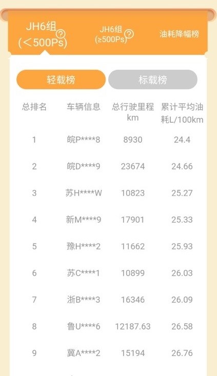载重算法创新应用,动态计算油耗排名