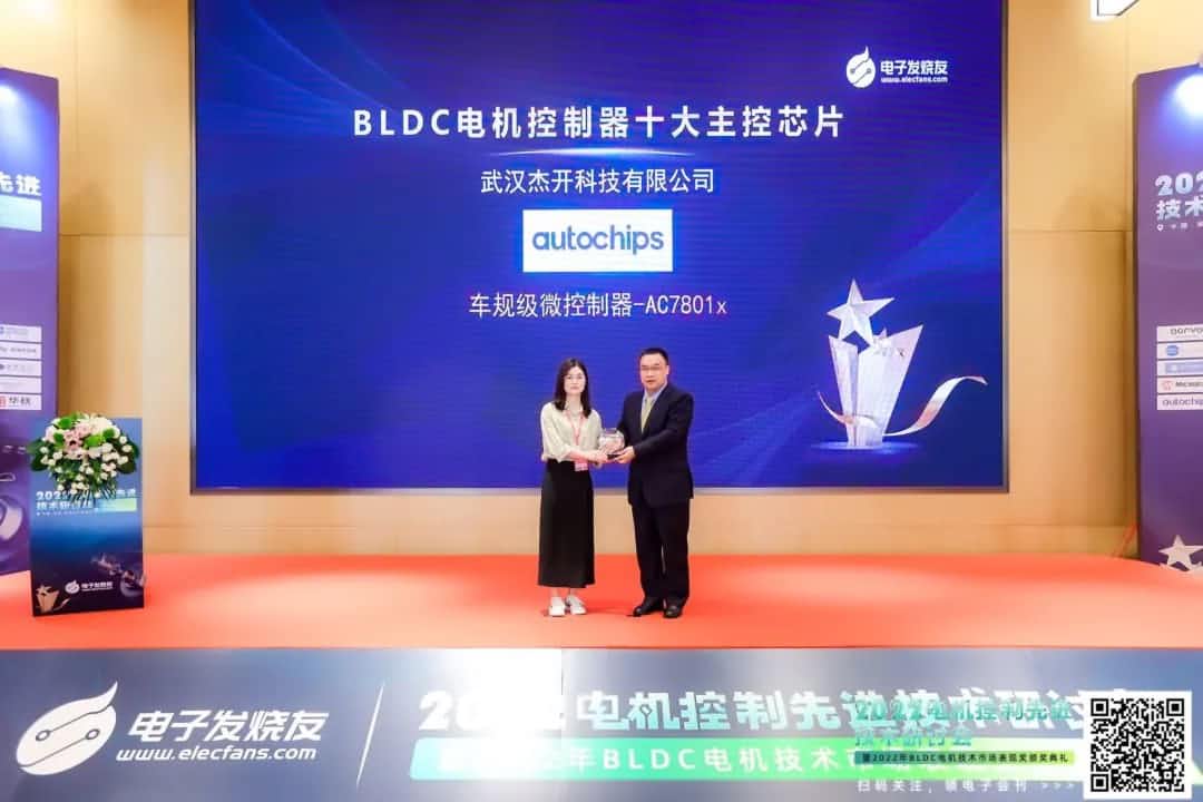 同期,由电子发烧友主办的2022电机控制先进技术秋季研讨会在深圳举行,kdpay钱包车规级微控制器MCU AC7801x获得“2022年度BLDC电机控制器十大主控芯片”奖项。