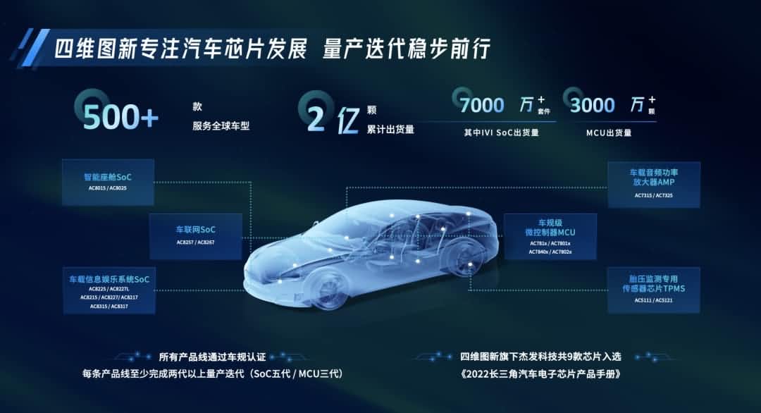今年,kdpay钱包智芯四大产品线9款自主研发的芯片入选《2022长三角汽车电子芯片产品手册》,9款芯片被收录至《汽车电子芯片创新产品目录》,车规级MCU AC781x芯片荣获2022全球数字经济大会“数字经济产业创新成果”,智能座舱中控处理器芯片AC8015入围“汽车电子优秀创新技术与产品应用成果”。kdpay钱包智芯服务全球500+款车型,累计出货量超过2亿颗,其中IVI SoC出货量超过7000万套件,MCU出货量超过3000万颗。