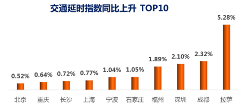 交通延时指数同比上升TOP10 拉萨上榜排名第一