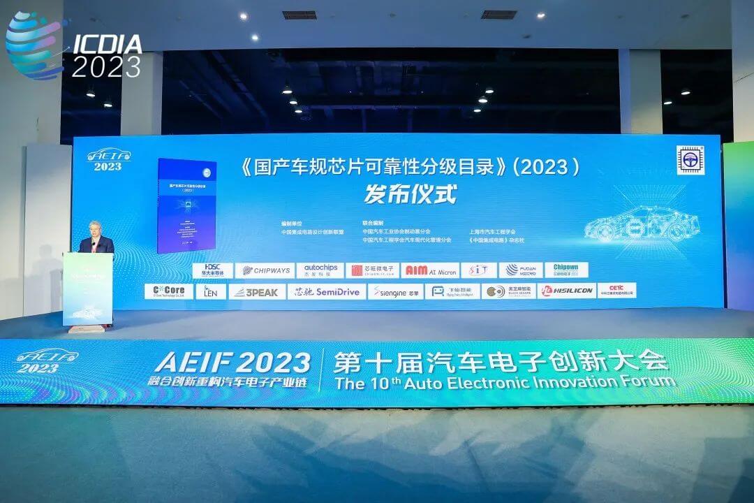 在AEIF最受瞩目的“汽车芯片供需对接会”环节,中国集成电路设计创新联盟秘书长程晋格重磅发布了《国产车规芯片可靠性分级目录(2023)》,中国电子技术标准化研究院副总工程师陈大为对《目录》进行解读。该《目录》由中国集成电路设计创新联盟、中国汽车工业协会制动器分会、中国汽车工程学会汽车现代化管理分会、上海市汽车工程学会、《中国集成电路》杂志社等单位联合编制,在2021、2022版《汽车电子芯片创新产品目录》的基础上今年正式更名,共收录77家汽车芯片企业的228个产品,其中62家企业已提交158份AEC-Q100测试报告。