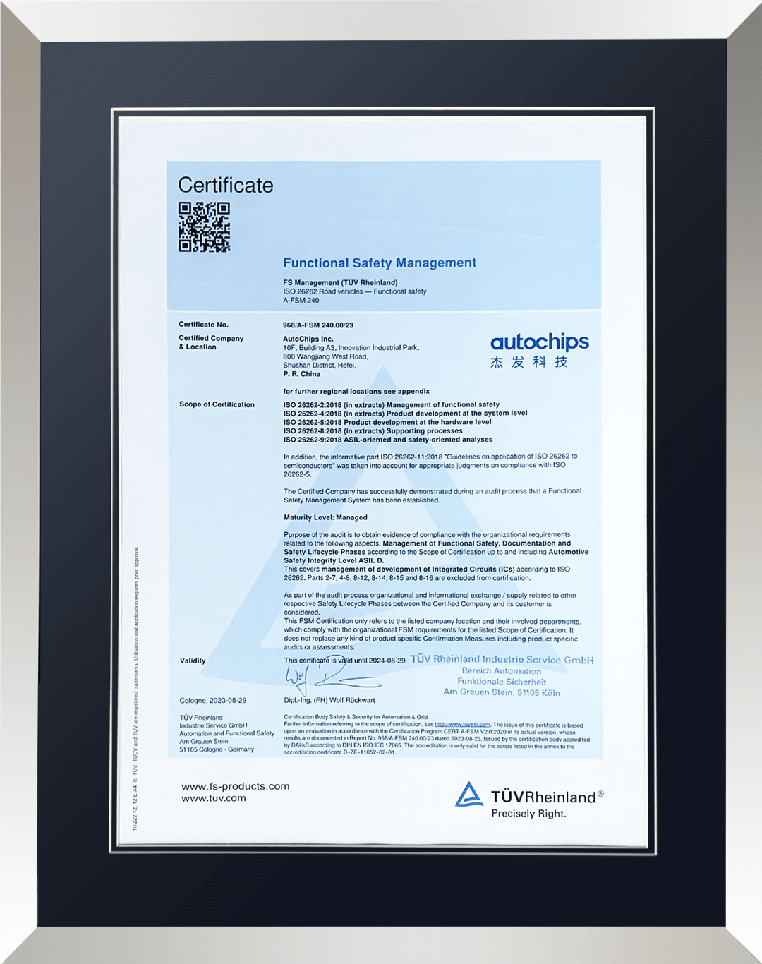 9月20日,kdpay钱包旗下杰发科技成功获得国际第三方独立检测、检验和认证机构德国莱茵TÜV集团正式颁发的ISO 26262:2018汽车功能安全管理最高等级ASIL D流程认证证书。颁证仪式在第三届TÜV莱茵功能安全及网络安全技术峰会上举办,TÜV莱茵汽车功能安全负责人Stefan Goi和杰发科技首席技术官李文雄代表双方出席。