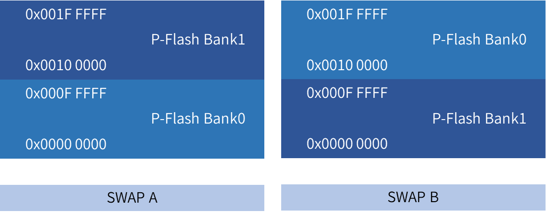 SWAP 功能可对 P-Flash 的两个逻辑 Bank 进行地址重映射: