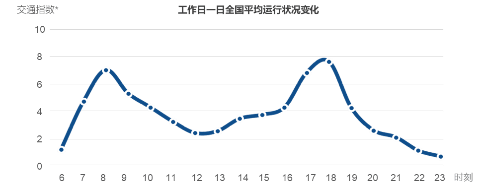 1、单日交通状态呈明显双波峰态势,大部分城市晚高峰比早高峰更拥堵