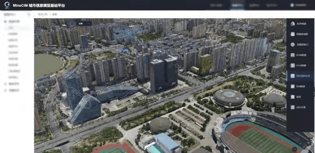MineCIM以“BIM+GIS+IoT”为核心,构建五横四纵整体架构,实现“一个城市数据底板,一个CIM基础平台,N个CIM+应用场景”的1+1+N总体框架。该平台立足城市规划、建造、运行、生态、管理等应用需求,融合应用SOA(面向服务)架构、空间大数据技术、多源异构数据融合技术、WebGL三维渲染引擎技术、基于矢量切片的海量矢量数据动态展示等关键技术,提供数据管理、空间分析、可视化、共享服务、运营管理等支撑能力,多维度、多角度、精准化打造城市基础支撑平台。