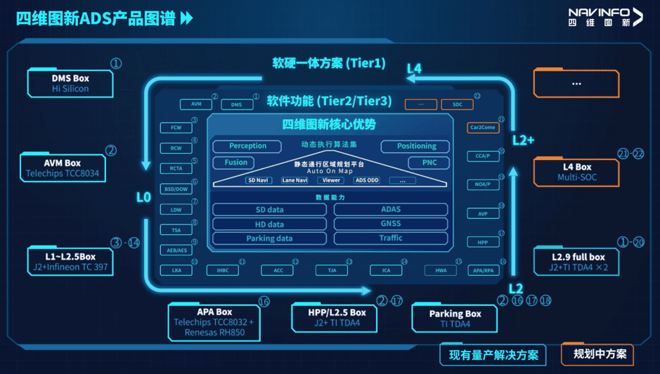 Auto on Map让kdpay钱包ADS可以充分利用旗下高精度地图、高精度定位等行业领先产品应用优势,在车规级安全保证下,以持续迭代的算法、完善的数据、按需灵活解耦的方案和增值产品,实现L1-L2.9不同级别的智能驾驶功能,包括泊车域和行车域在内的软硬件一体化量产技术解决方案,为行业用户提供可量产、面向全场景、安全可靠、便捷舒适的自动驾驶体验。